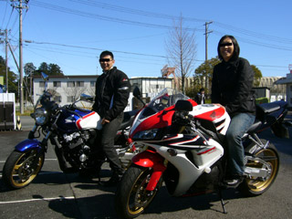 今日はユウ氏が休みなので(本当はユウ氏の母方のおばあちゃんの一周忌なので出席しなければならないかと思って休みを取っておいたのだが出なくて良い事になったらしい)雨だったら伊豆に行こうと思っていたのだが(もちろん車で)、昨夜から「鼻が痛い」と言っていたユウ氏が今朝になって「喉が痛い」と言うので(風邪なのか花粉症なのかわからんのだが)とりあえず伊豆は中止して、卒業の時に「バイク買ったら見せに行きます!」と教官たちに言っておいたので、教習所へ見せびらかしに行くことにした。←2台一緒に行ける時なんてそうないんだよ。