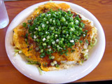 スペシャルは、キャベツ、もやし、玉子、そば、肉(ここまでは全て共通っぽい)、イカ、エビ、イカ天、これでもかと大量のネギ、チーズ(もしくはキムチ←選べる)が入っているのだ。これで1160円。