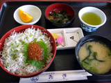ビミョウな値段だな~。と思ったけどシラスの量が結構スゴイ。ごはんの厚さの2/3くらいの厚さのシラスが乗っていた。イクラも美味しい。これで800円くらいだったらまた食べたいんだけど←おい。わかめの味噌汁にわかめの味噌和え。他に食材ないのかよ(笑)。しかし味は良かった。完食。ご馳走様でした★