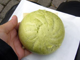 皮が緑なのはよもぎか何かが入っているのでしょう。食べた感じでは特に何も感じなかったけど。